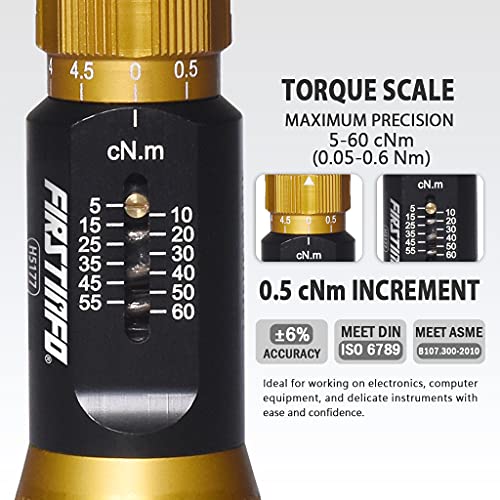 【Impostazione della coppia rapida e facile da regolare】-- Gamma di coppia da 5 a 60 cNm, con incrementi di 0,5 cNm. Regolazione intuitiva della coppia con una sola mano per regolare rapidamente le impostazioni della coppia. Impostazione della coppia ruotando l'anello di regolazione dorato.