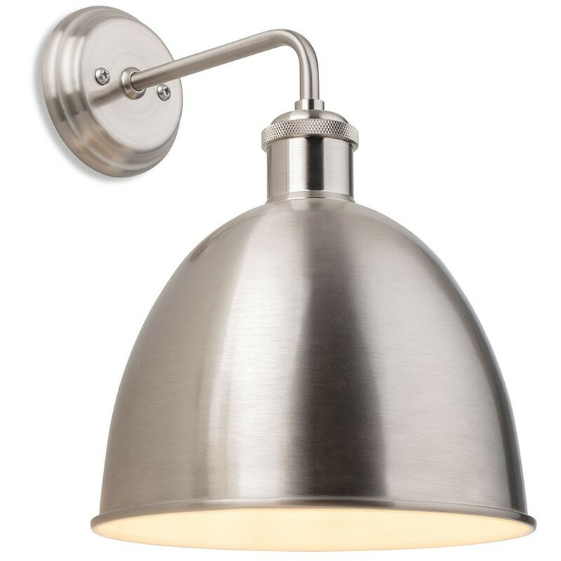 Firstlight Genoa Applique a cupola industriale in acciaio spazzolato | Finitura: Acciaio Spazzolato Altezza (cm): 28,00 | Larghezza (cm): 20,00 | Tipo di lampada: E27 | Numero di luci: 1 | Classificazione IP: | Lampadina inclusa: No