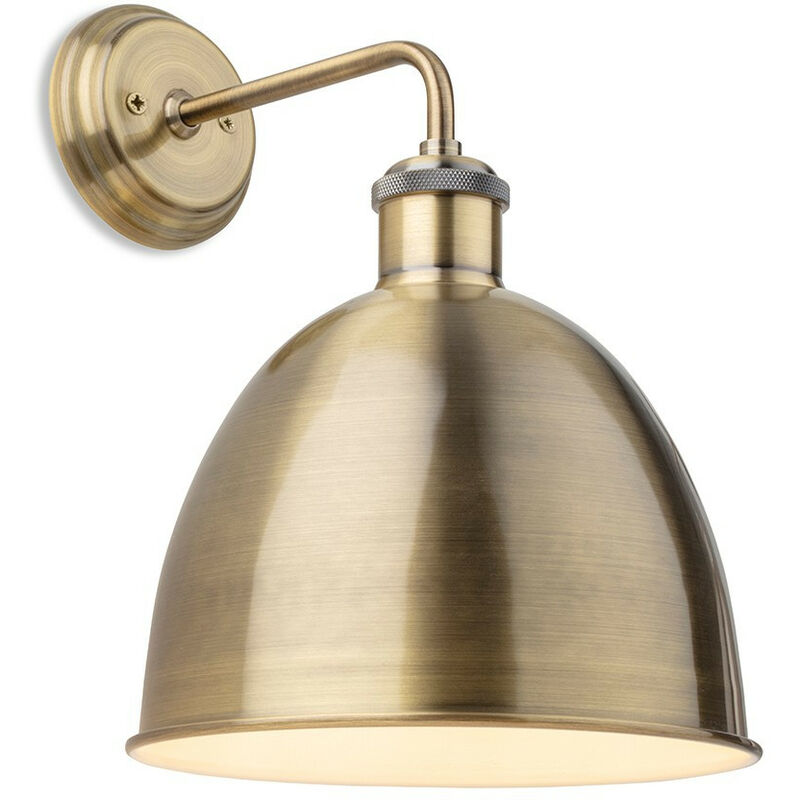 Firstlight Genoa Lampada da parete industriale a cupola in ottone anticato | Finitura: Ottone Anticato Altezza (cm): 28,00 | Larghezza (cm): 20,00 | Tipo di lampada: E27 | Numero di luci: 1 | Classificazione IP: | Lampadina inclusa: No