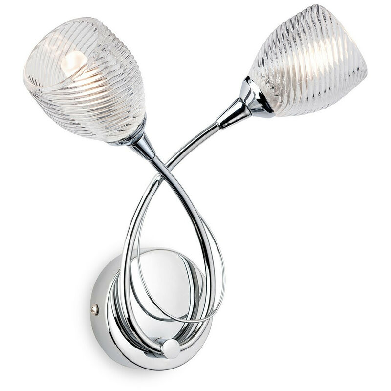 Firstlight Henley - Applique da parete per interni a 2 luci cromato, vetro decorativo trasparente, G9 | Finitura: vetro decorativo trasparente, cromo | Classificazione IP: IP20 | Altezza (cm): 24 | Larghezza (cm): 23 | Sporgenza (cm): 11,5 | No. di luci: 2 | Tipo di lampada: G9 | Potenza (max): 33