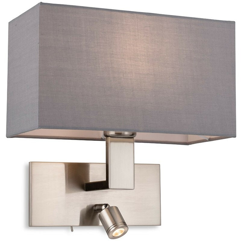 Firstlight Raffles Lampada da parete con luce di lettura commutabile regolabile in acciaio spazzolato con paralume grigio | Finitura: Acciaio Spazzolato con Paralume Grigio Altezza (cm): 30,00 | Larghezza (cm): 28,00 | Tipo di lampada: LED INTEGRATO | Numero di luci: 1 | Classificazione IP: | Kelvin: 3000K | Lumen: 80 lm