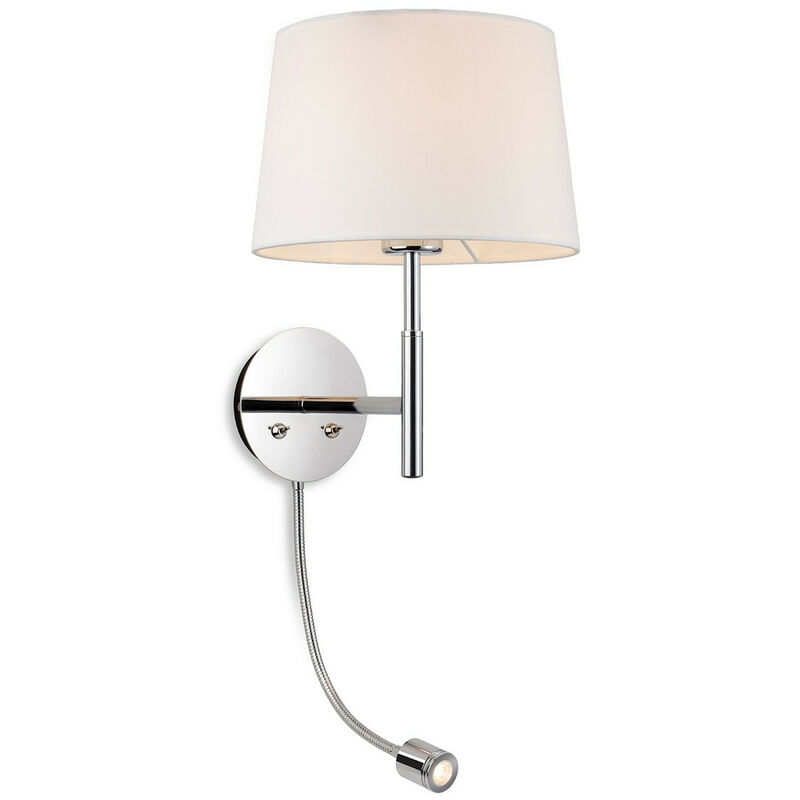 Firstlight Seymour Lampada da parete classica a interruttore con luce di lettura regolabile cromata con paralume crema | Finitura: Cromo con Paralume Panna Altezza (cm): 60.00 | Larghezza (cm): 23,00 | Tipo di lampada: LED INTEGRATO | Numero di luci: 1 | Classificazione IP: | Kelvin: 3000K | Lumen: 80 lm