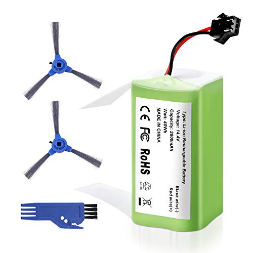 FirstPower 14,4V 2800mAh Batteria di Ricambio Li-ion, Compatibile con Eufy RoboVac 11, 11S, 15C, 15T, 30, 35C, Ecovacs Deebot N79 N79S DN622 e Conga Excellence 990, 950, 1090, Con 2 Spazzole Laterali