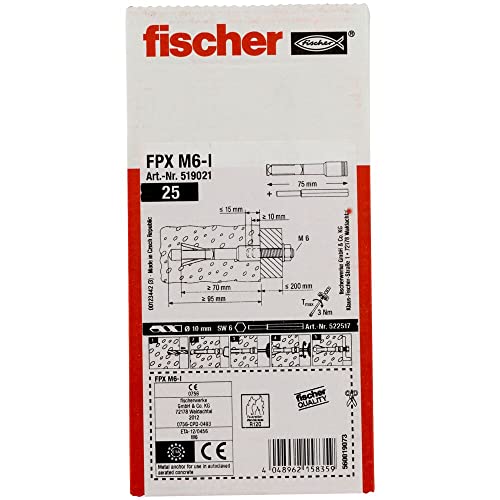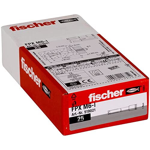 Fischer 519021 Tassello in Acciaio per calcestruzzo Cellulare ad espansione Quadra con Filettatura Interna FPX M6-I, Grigio