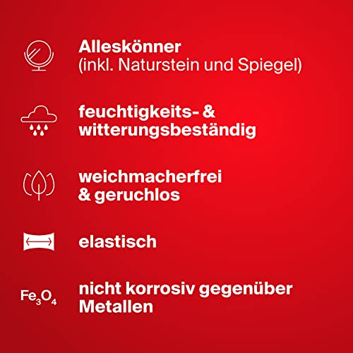 Versatile: la colla per montaggio è adatta a quasi tutti i materiali e in interni ed esterni - non solo pietra, cemento, ceramica, rame, pietra naturale, ecc. possono essere incollati senza problemi, anche specchi e diversi articoli decorativi trovano il loro posto duraturo.