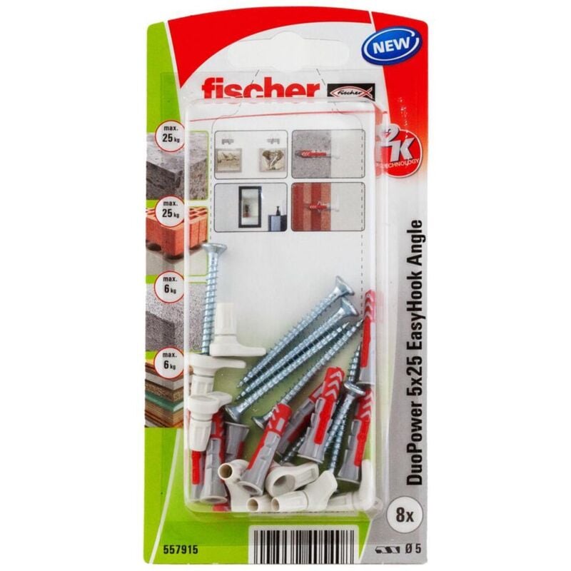 Blister 6 maniglie fischer duopower easyhook 6x30. innovazione che permette un montaggio semplice e rapido, la vite a testa svasata si inserisce nell'adattatore a gancio e si fissa a parete in modo rapido e sicuro con la ruota.