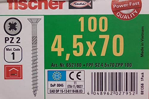 Fischer 652180 - Vite filetto agglomerato FPF-SZ 4,5x70 ZPP 100 (Confezione da 100pz.)