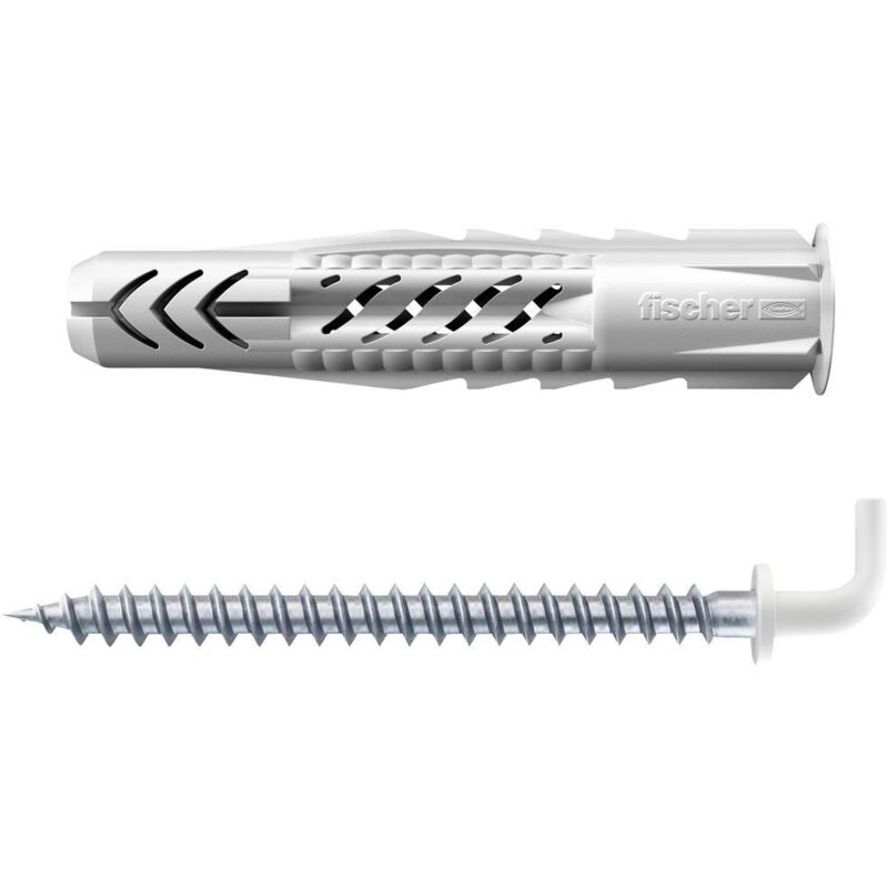 Dalla linea di articoli dedicati ai fissaggi e ancoraggi a marchio FISCHER, il kit di tasselli UX 8 X 50 R OH N K e ganci dritti in acciaio verniciato bianco, è composto dai tasselli in nylon, dal Ø di 8 mm, sono caratterizzati dal principio di funzionamento universale, che avviene per annodamento ed espansione, e ne permette il suo utilizzo in tutti i materiali di supporto pieni, forati e in lastre. Il fissaggio UX è la scelta giusta se nonsi conosce il materiale di base, infatti grazie alle alette laterali dell'UX assicurano una guida ottimale della vite. Le alette seghettate anti-rotazione impediscono la rotazione nel foro del tassello, questo garantiscela massima sicurezza durante l'installazione. I tasselli UX fischer sono la scelta migliore per fissare qualsiasi cosa, su superfici come calcestruzzo, mattone pieno, blocchi cavi, pietra naturale.