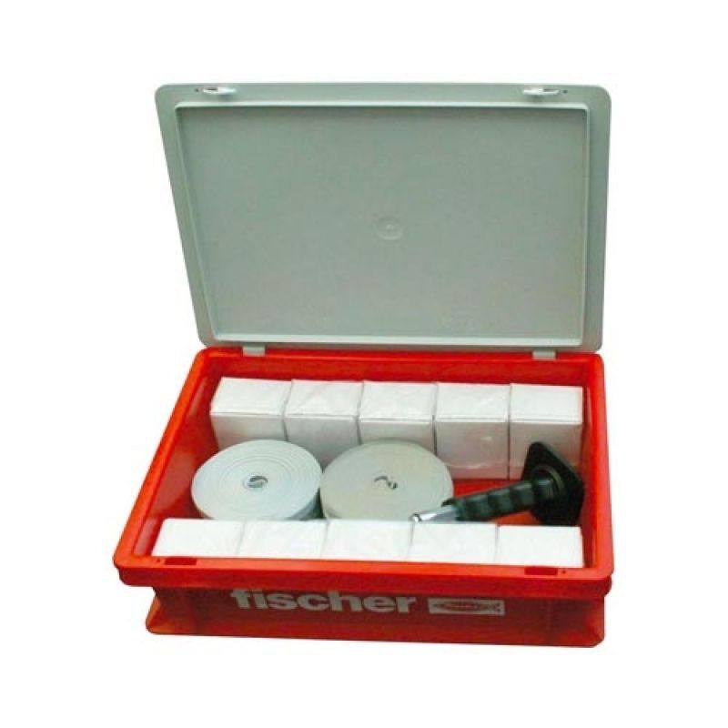 Box in plastica con: 12 bandelle in tessuto GWB, 2000 chiodi ED 18 e 1 percussore SZE. (DianFlex)