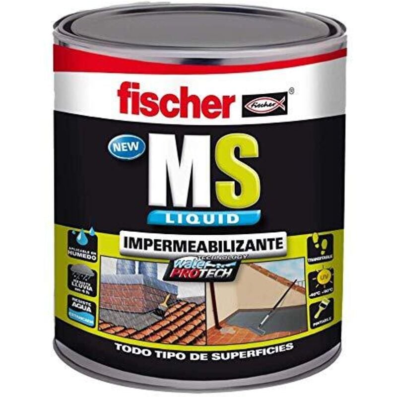 Impermeabilizzante Fischer MS Liquido Marrone / Tegola Confezione da 4 kg L'impermeabilizzante Fischer MS Liquido è un'ottima soluzione per impermeabilizzare e sigillare materiali alle superfici esposte all'acqua e all'umidità. Se non si utilizza una coperta in geotessile, si applicano 1,5 Kg/m2 (circa uno spessore di 1 mm). Se si utilizza il geotessile, si applicano 2,5 Kg/m2 (spessore 1,7 mm). Il tempo di manipolazione del prodotto per l'applicazione è di 30 minuti. Il primo strato si asciuga in circa 6 ore. Una volta applicato resiste a temperature comprese tra -40 °C e 90 °C. Una volta asciutto può essere verniciato. È altamente resistente allo sbiadimento, poiché ha protezione dai raggi ultravioletti, quindi è adatto per l'uso esterno. Il suo utilizzo è particolarmente indicato nella riparazione di grondaie e grondaie e per l'impermeabilizzazione e la manutenzione di tetti, isolando dall'umidità. Caratteristiche del prodotto: » Impermeabilizzante Fischer MS Liquido Marrone