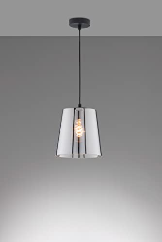 Fischer & Honsel 60856 - Lampada a sospensione, modello Latina, colore: nero sabbia, vetro fumo, diametro: 22,00 cm, soffitta: 150,00 cm, 1 lampadina E27 max. 40,0 Watt