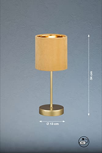 Fischer & Honsel Lampada da tavolo Aura, elegante lampada da tavolo dal design classico con interruttore a cavo, 1 attacco E 14, metallo dorato e paralume in velluto giallo, altezza: 34 cm