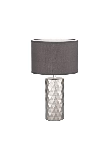 Fischer & Honsel Lampada da tavolo Abo 1 x E27 max. 40,0 Watt, paralume in tessuto, colore argento, 25 x 25 x 43 cm (lunghezza x larghezza x altezza)