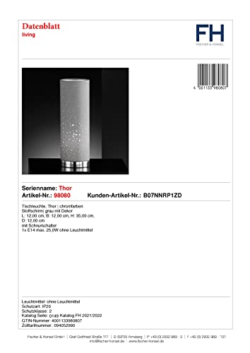 Fischer & Honsel Lampada da tavolo Thor 1 x E14 max. 25,0 Watt, paralume in tessuto, cromato, 12 x 12 x 35 cm (lunghezza x larghezza x altezza)
