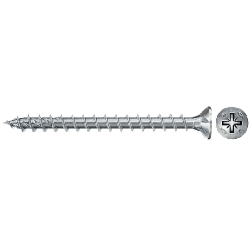 La fischer Power-Fast II FPF II è una vite passivata blu zincata con filettatura completa e attacco Phillips PZ. La testa svasata consente il montaggio a filo nel legno. La filettatura continua su tutta la lunghezza della vite garantisce una trasmissione ottimale della potenza. La vite è ideale per il fissaggio in connessioni generali in legno, planking, battiscopa e raccordi in metallo e porte.