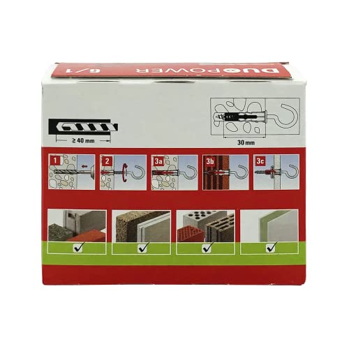 Fischer 25 Tasselli Duopower con Occhiolo Aperto, 6 x 30 mm Universali, per Muro pieno, Mattone Forato, Cartongesso, 541743