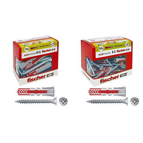 Fischer 10 Tasselli Duopower con Vite, 10 x 50 mm, per Muro pieno, Mattone Forato, Cartongesso, 544018 & 50 Tasselli Duopower con Vite, 6 x 30 mm, per Muro pieno, Mattone Forato, Cartongesso, 544016