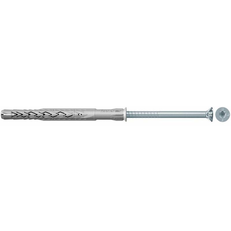 Fissaggio prolungato SXRL Fissaggio prolungato in acciaio zincato con vite di sicurezza fischer con testa svasata pianaMateriali di supporto: Certificato per: Mattone semipieno (perforato verticalmente) in laterizio Calcestruzzo aerato (cellulare) Blocchi cavi in calcestruzzo alleggerito Mattone semipieno (perforato verticalmente) in silicato di calcio Blocchi con isolamento termico Blocco cavo in calcestruzzo normale e alleggerito Mattone pieno in laterizio Mattone pieno in silicato di calcio Calcestruzzo ≥ C12/15 Adatto anche per: Pietra naturale compatta Pannelli pieni in gesso Vantaggi: Certificato anche per calcestruzzo cellulare: dispone di una tripla profondità di posa (50, 70 e 90 mm) per poter scegliere in funzione dell'intensità del carico Doppio stadio di espansione: grazie alla speciale geometria del tassello, le forze di ancoraggio si distribuiscono uniformemente sulle pareti del foro Approvazione ETA: permette l‘utilizzo su numerosi materiali edili, garantendo al tempo