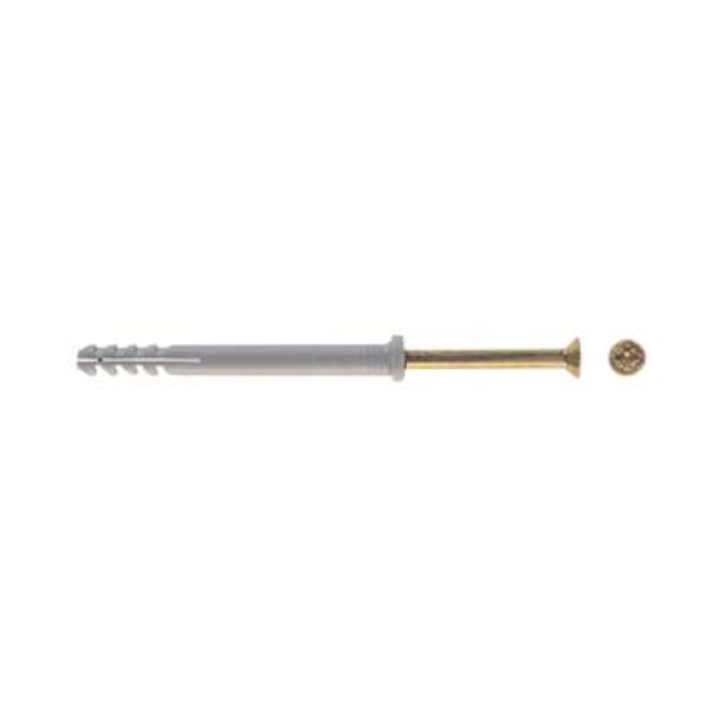 Ø mm.6x60 vite ø mm.4x65 fornito con vite premontata a chiodo d'acciaio (classe 4.8) testa svasata piana a zincatura passivata gialla con impronta a croce Categoria merceologica: Fissaggio - Ferramenta - Tasselli vari