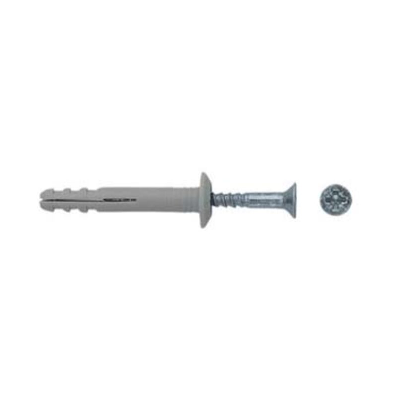 Ø mm.6x40 vite ø mm.3,5x46 tassello nylon con testa larga ø mm.13 fornito con vite a chiodo premontata in acciaio zincocromato Categoria merceologica: Fissaggio - Ferramenta - Tasselli vari