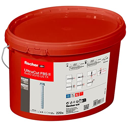 Contenuto della confezione: 220 viti per calcestruzzo UltraCut FBS II 8 X 80 30/15 US TX in pratico secchio (Art. n. 563925) di fischer
