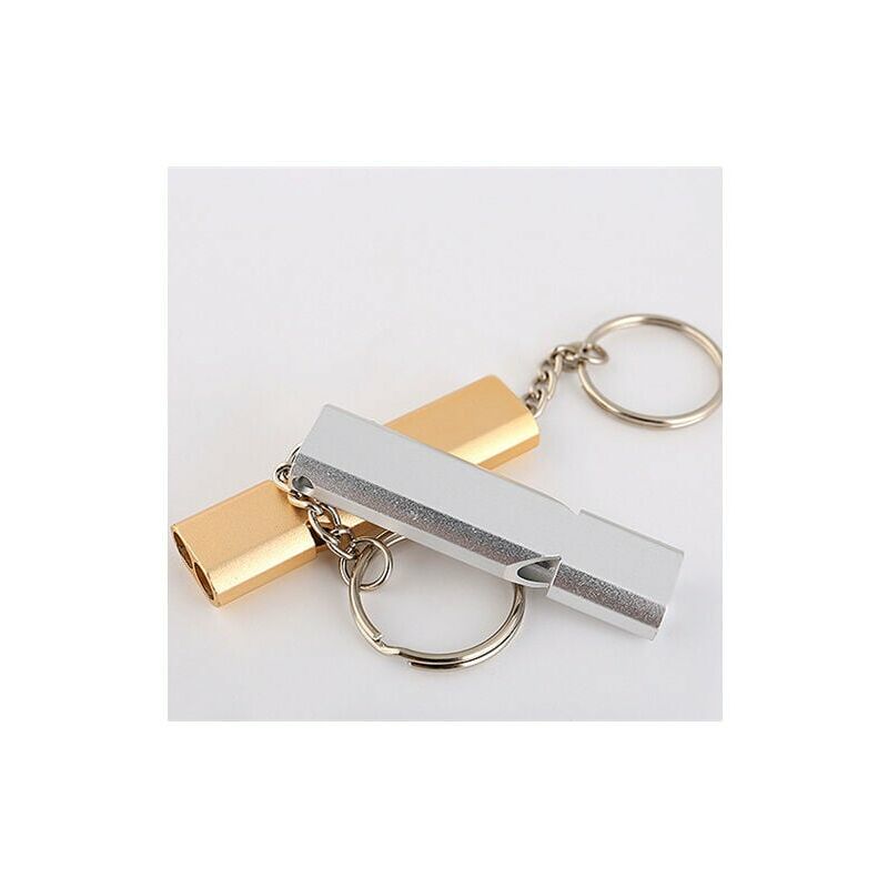È realizzato in lega di alluminio e progettato con una doppia camera. È alto in decibel e viaggia lontano. È un ottimo strumento per la sopravvivenza all'aperto, il salvataggio e l'addestramento in caso di incendi e terremoti. Il fischietto svolge un ruolo importante nel salvataggio e nella sopravvivenza sul campo. Sebbene disponiamo di migliori apparecchiature di comunicazione elettronica, il ruolo del fischietto non può essere ignorato. Una volta che le moderne apparecchiature di comunicazione non hanno alimentazione, area di