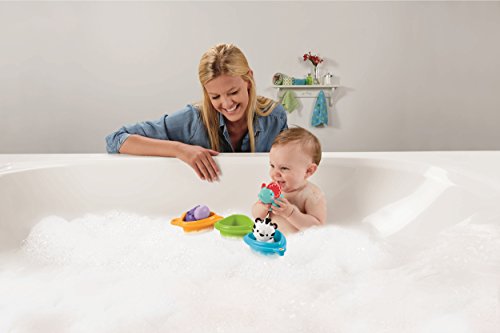 Collegare le 3 barchette galleggianti e inserirvi i simpatici animali aiuta il bambino a sviluppare le capacità motorie complesse e la coordinazione manuale-visiva