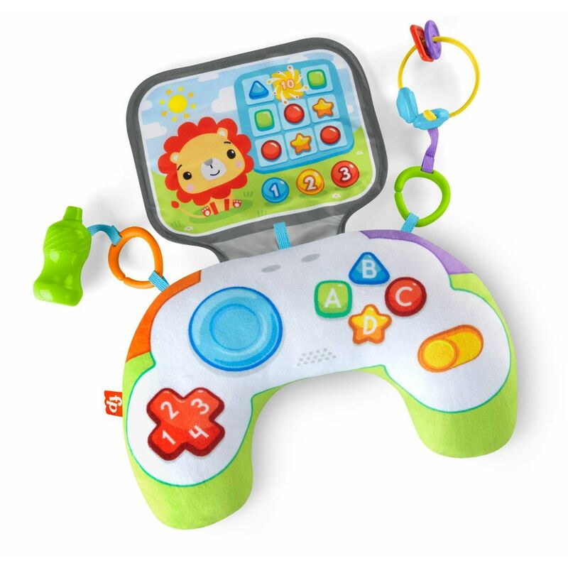 Giocare distesi sul pancino ? un vero spasso con il Cuscino Baby Gamer Fisher-Price. Questo morbido cuscino curvo aiuta a far sentire i neonati a proprio agio mentre si divertono a giocare con lo schermo frusciante, le cuffie clac clac e il sonaglino a forma di bevanda energetica collegato al cuscino. Durante il gioco da distesi, il cuscino aiuta a rafforzare le capacit? motorie di base e a stimolare allegramente i sensi dei piccoli con suoni e superfici divertenti. Cuscino di supporto per giocare sul pancino ispirato ai videogiochi con due giocattoli agganciabili ? dotato di un ampio schermo frusciante e 2 giocattoli agganciabili: cuffie clac clac e sonaglino a forma di bevanda energetica per un divertimento che stimola i sensi Gioca ovunque! Potete portare i 2 giocattoli agganciabili ovunque desideriate cos? il vostro piccolo gamer potr? spassarsela dove vuole e quando vuole Il cuscino ? lavabile in lavatrice per una pulizia agevolata Dalla nascita in su