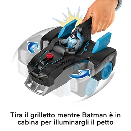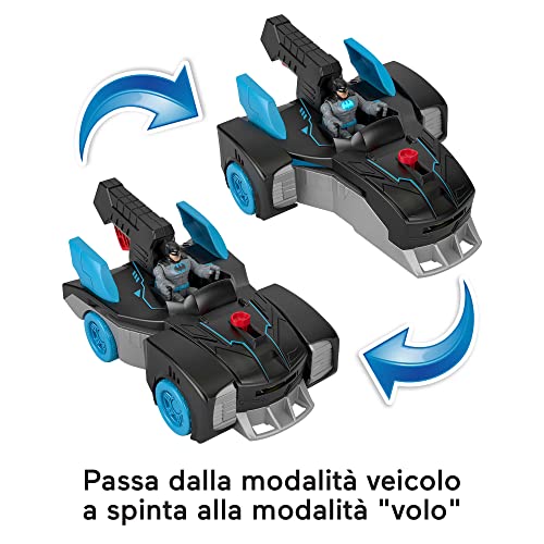 Fisher-Price Imaginext- DC Super Friends Batmobile Bat-Tech, Veicolo a Spinta che si Trasforma e Personaggio di Batman con Luci, Giocattolo per Bambini 3+Anni, GWT24