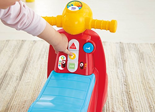 Tre pulsanti di forma insegnano numeri, colori, forme, opposti e molto altro ancora, l'interruttore di movimento attiva i contenuti di apprendimento quando il bambino scoot.