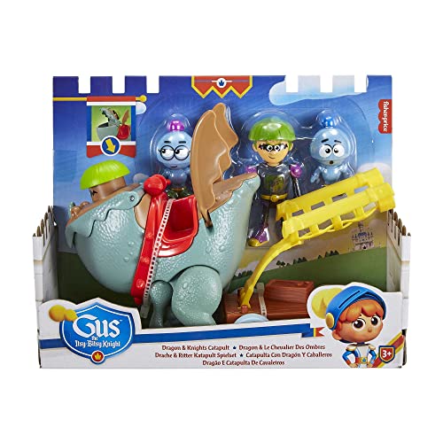 Fisher-Price - Playset a Tema Medievale con Gus Mini-Maxi Cavaliere Snodato, Drago, Catapulta e 2 Personaggi in Miniatura da Caricare e Lanciare, Giocattolo per Bambini 3+ Anni, HGP55