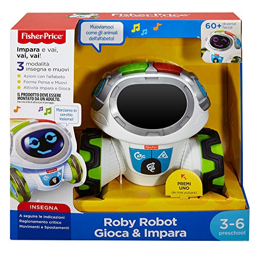 Fisher-Price Roby Robot Gioca & Impara, Robottino Giocattolo Educativo per Bambini dai 3 Anni, con Musica, Suoni e Canzoni, FLP12