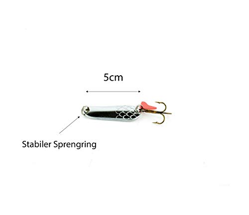 Anelli affilati con ganci: affilati come i denti di pesce predatore sono naturalmente anche i ganci degli spoon da pesca Zite di questo set di esche. Le ancorette affilate sono larghe circa 2 cm e 3 cm e dispongono di ganci per il numero più sicuro.