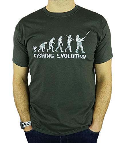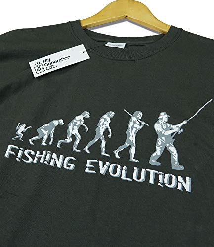 Fishing Evolution - Divertente Regalo di Compleanno di Pesca | Uomini Presenti T-Shirt Grigio Scuro L
