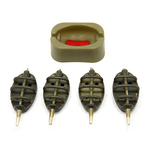 Sam's Fishing, set di 4 feeder per pesca con metodo piatto Inline, 15 g, 20 g, 25 g, 35 g, compreso 1 stampo, più un modulo a sgancio rapido, Green-A320