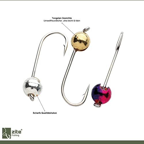 Zite Fishing - Set di micro perle di tungsteno, con ganci per trota, con testa di tungsteno, 0,3 - 1,2 g, 27 pezzi in scatola