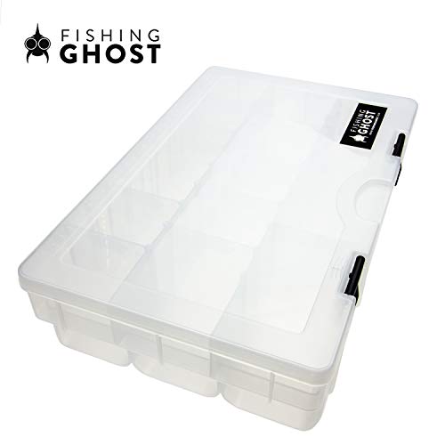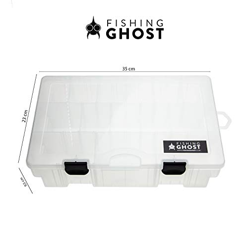 FISHINGGHOST Lure Box - Dimensioni: 35 x 22 x 9 cm, Impermeabile, Bait Box, placca per Esche e Esche morbide, Scomparti Interni Regolabili Individualmente
