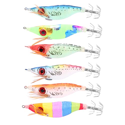 Fishlor Gamberetti richiamo di Pesca, 6 pz 10 cm richiamo di Pesca Dura Esca gambero di Legno Artificiale con Polpo seppie Calamari Ganci