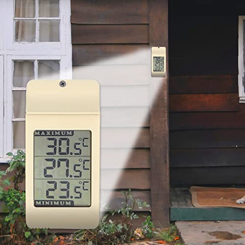 FISHTEC Mini/Maxi Termometro Cifre speciali - Impermeabile IPX4 - Per interni ed esterni con gancio a muro - Memoria delle temperature minime e massime - 16 x 8 cm - Beige