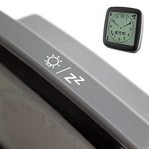 Fishtec - Sveglia digitale senza tic tac, silenziosa (senza lancette), display temperatura, data, tasso di umidità, 7 lingue, 2 allarmi, retroilluminazione, compatta, 9 cm