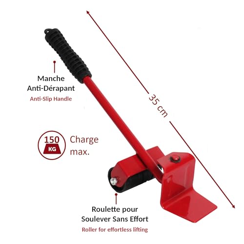 FISHTEC - Kit Traslochi Mobili - 1 Leva Ruote + 4 Pattini Spostamento - Carico Max di 150 kg - Adatto per Tutti i Pavimenti Stabile - Facile Utilizzo - Ideale per Traslochi
