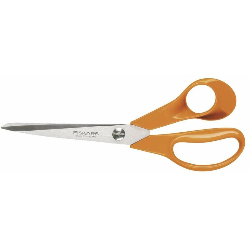 Le lame affilate mantengono la massima performance di taglio I manici dalla forma asimmetrica permettono un controllo eccellente e il massimo comfort Il perno a vite brevettato è utile per regolare la tensione delle lame FISKARS Ciseaux universels 9853, longueur: 210 mm pour droitiers, asymetrique, pour couper le tissu, lames tranchantes, anneaux ergonomiques, vis reglable pour ajuster la tension des lames, couleur: orange (9853)