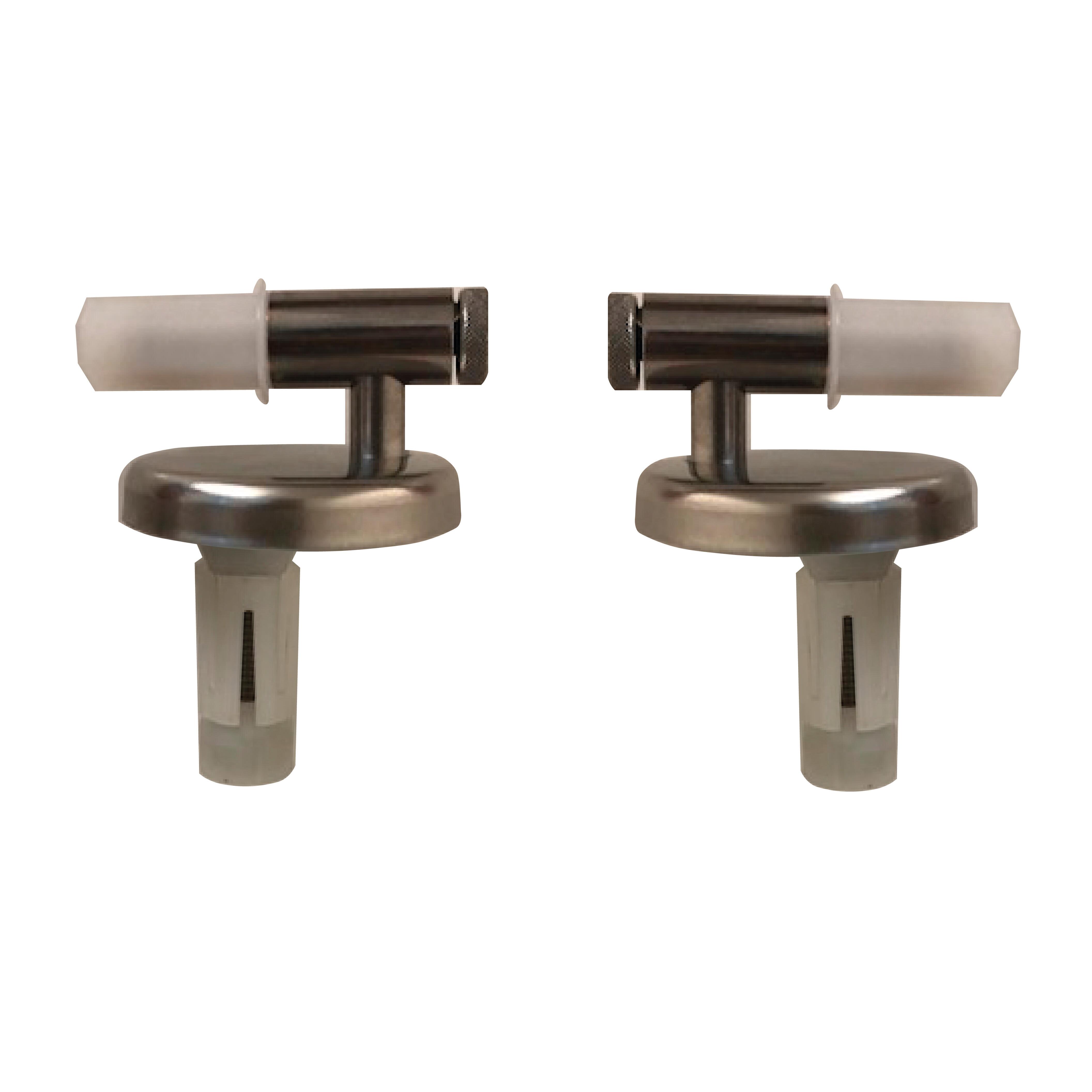 Kit di fissaggio completo di attacchi ad espansione con coppia di cerniere in acciaio inox lucido, con fissaggio regolabile ad estrazione rapida. Estrazione rapida per permettere una pulizia piu' efficiente.. Antiruggine