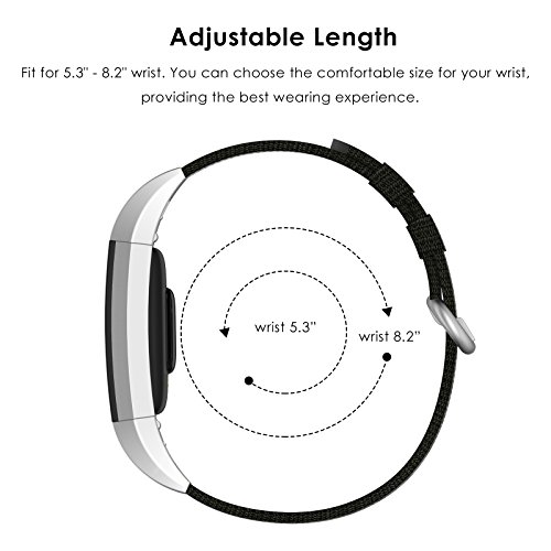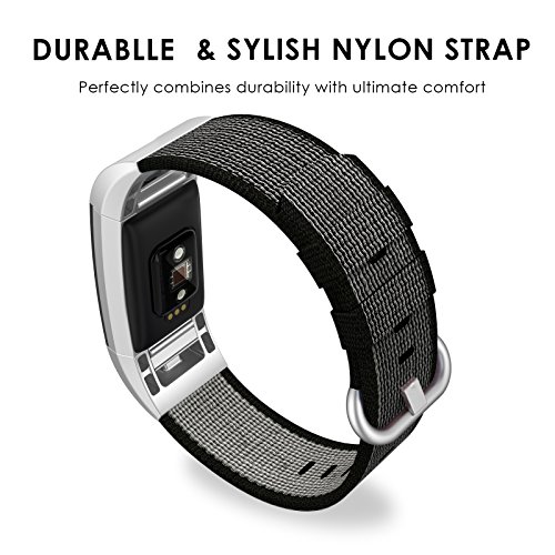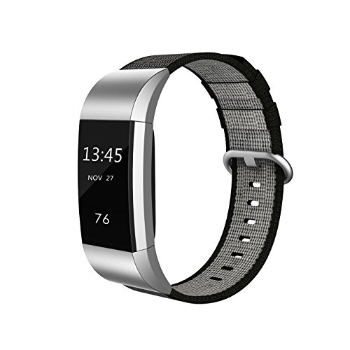 Fitbit Charge 2 Band Nylon, Swees Woven Nylon Braccialetto Regolabile Grande Cinturino ( 6" - 8.2") per Fitbit Charge 2 - Nero