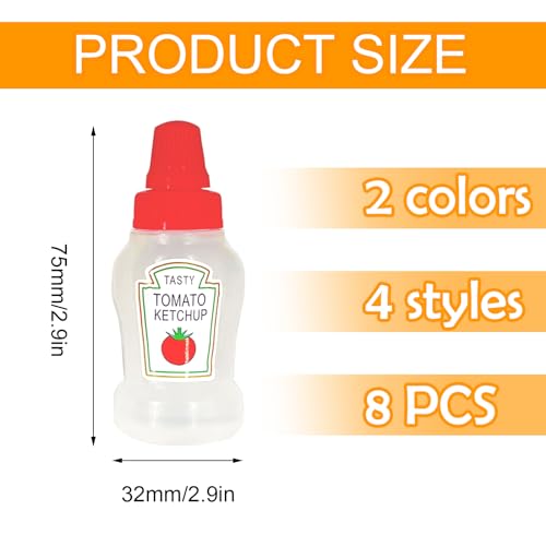 Fitbitop 8 mini bottiglie da spremere, 25 ml, mini bottiglia per ketchup, piccolo distributore di salsa, bottiglia di plastica da riempire per ketchup, salsa di soia, salsa di miele, condimento per