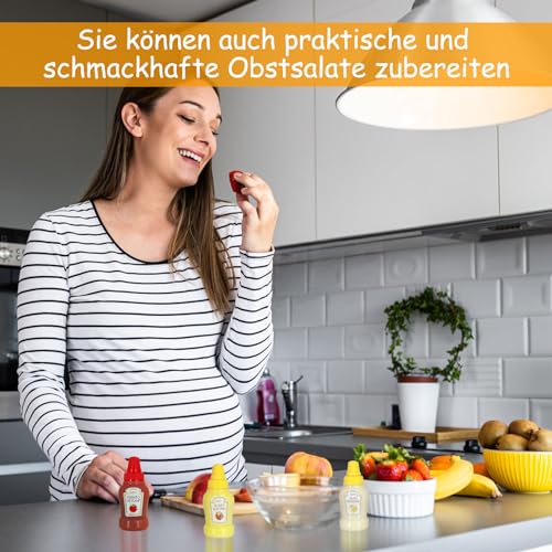 Pratico dispenser per salse: con queste mini bottiglie da spremere è possibile dosare e versare le salse in modo preciso sui vostri cibi senza versare o sporcare. Questo renderà il servizio e la preparazione dei pasti molto più facile e ordinata.