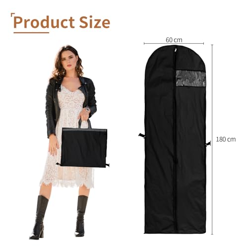Fiteber Borsa Porta Abiti, 180 x 60 CM Borsa per Abiti da Sposa, Design Pieghevole con Finestra Trasparente, Resistente alla Polvere e Agli Odori, Adatto per Abiti da Sposa e Abiti da Sera (Noir)