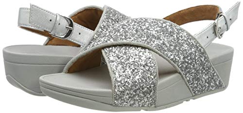 Fitflop Lulu Glitter Back-strap Sandali con Cinturino alla Caviglia Donna, Argento (Silver 011) 42 EU