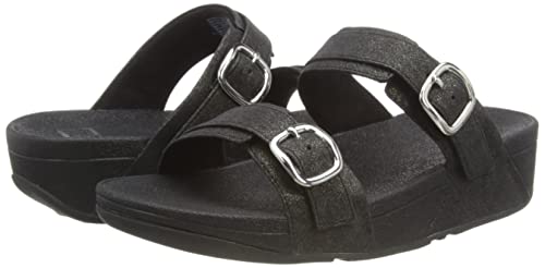 Fitflop Lulu Shimmer Adjustable Slides, Infradito Donna, Tutto Nero, 43 EU