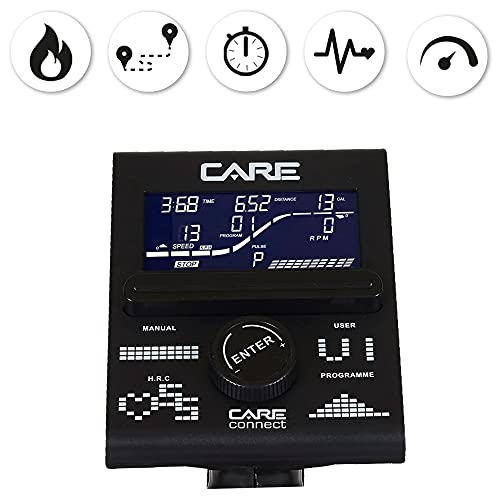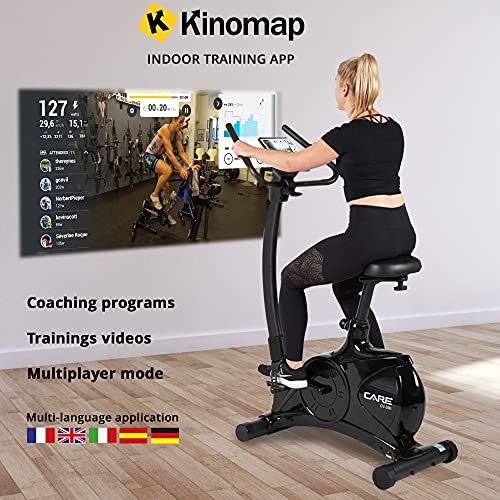 CARE FITNESS Cyclette motorizzata CV-395, destra 24 programmi di allenamento, massa di inerzia 12 kg, resistenza magnetica motorizzata, Connettività applicazione cellulare/Kinomap, Nero (55395)